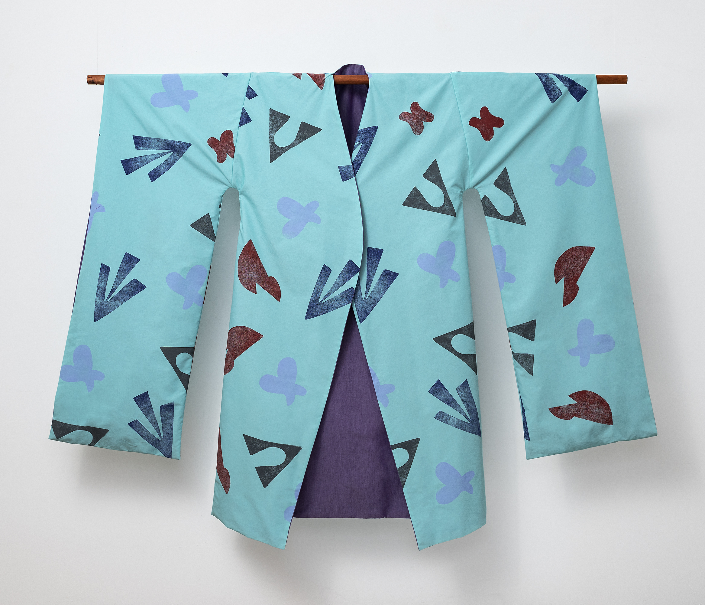 The collection features colorful abstract shapes, wood block printed by hand onto t-shirts, tanktops, totebags and yardage of fabric from which were created into Kimonos. The pieces were designed and created in collaboration with members of the community art center